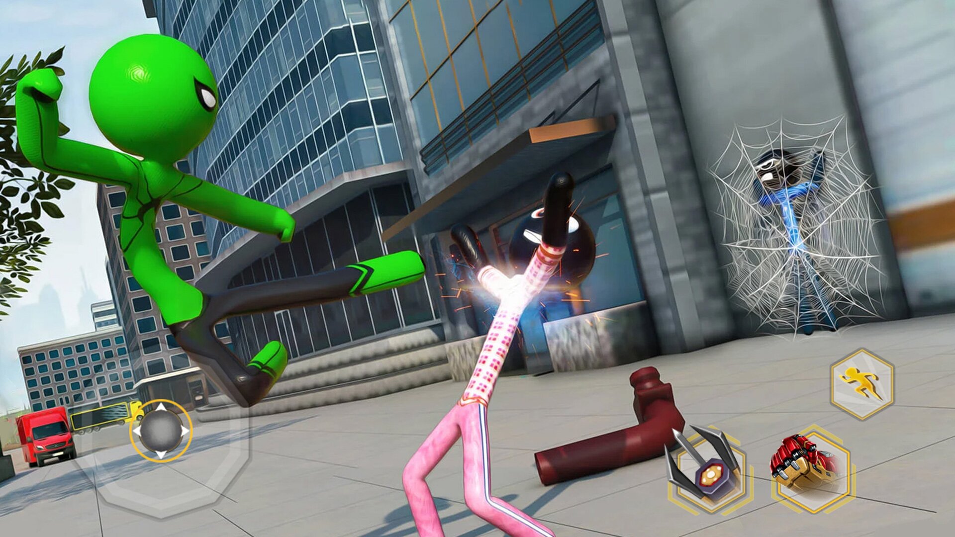 1、游戏背景设定在一个充满危险的城市,为了守护城市的和平,火柴人英雄再度出发,