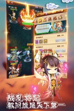 3、顶级神装、专属神器,即刻赠送;武将可通过等级、品质、星级等多维度深度培养,拥有丰富的趣味玩法和社交互动功能。