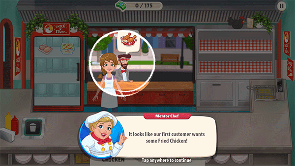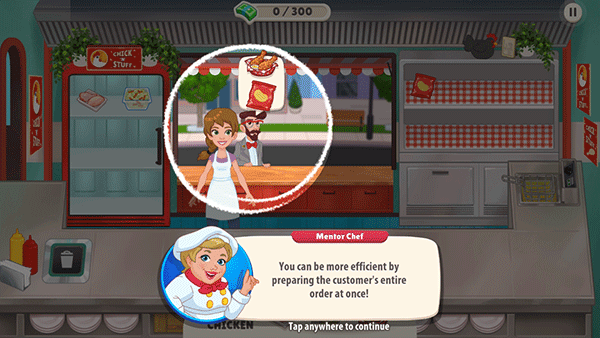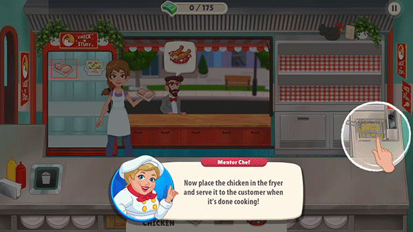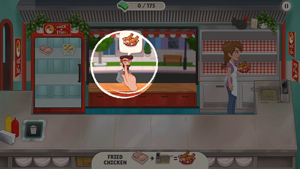 进到游戏内,我们可以看到顾客头顶会有一个“炸鸡”这就是他的需求。