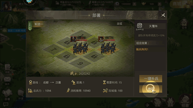 5、此刻,你能够直接选择并点击“出征”这一按钮选项,随即进入部署界面。