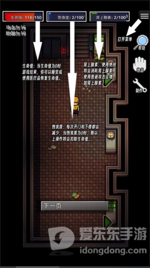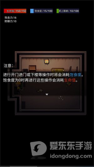 3.时刻注意,进行开门或下楼等操作时将会消耗饱食度,饱食度为0将会消耗生命值