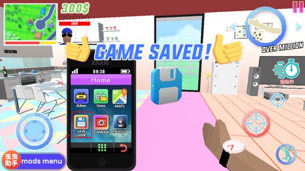 1. 开启《沙雕模拟器》这款开放世界沙盒游戏,进入游戏界面后,轻点左侧的手机图标。