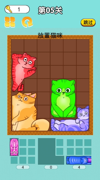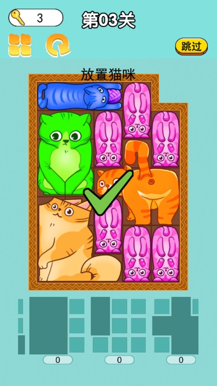 3. 各种不同形状的方块皆以猫咪形象为蓝本设计,需将它们合理放置到指定区域内。