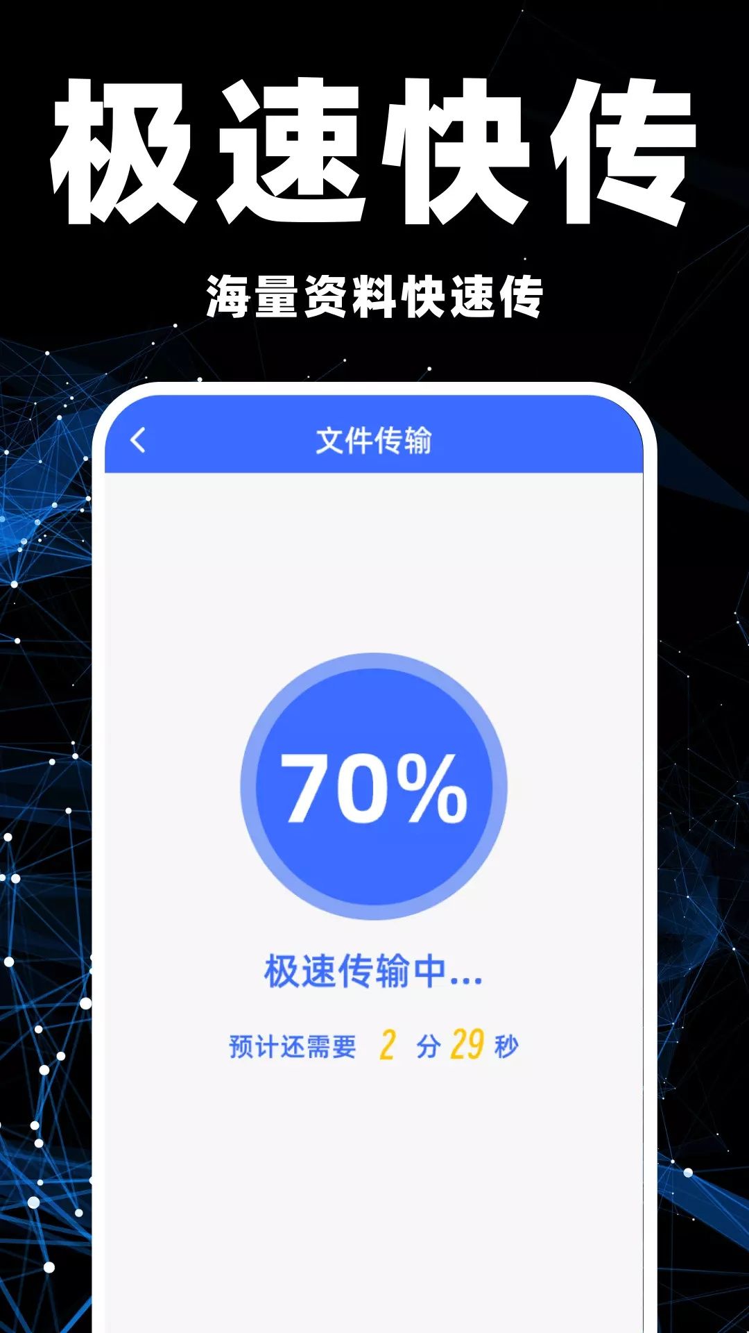 传输速度快,传输效率高,可以在不同手机之间快速传输文件,而不会让用户等待。