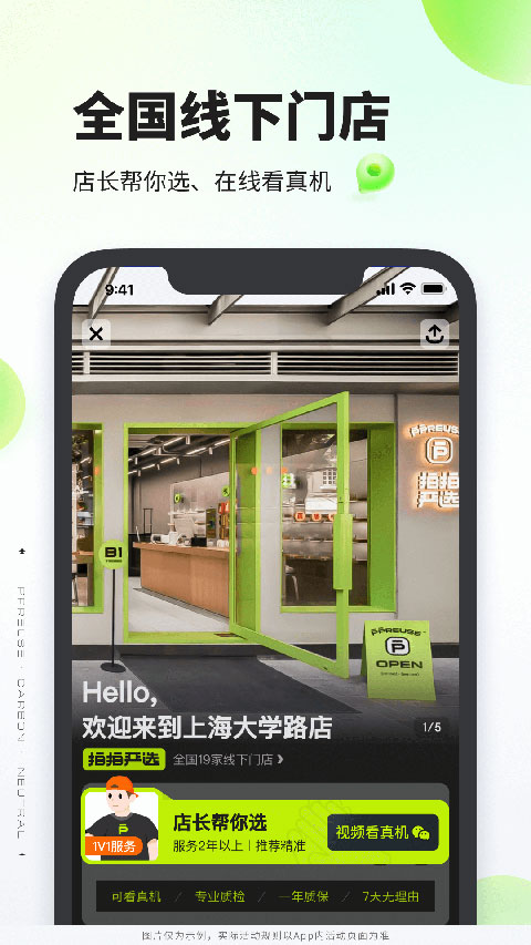 APP内设有门店直播,店长帮选服务,看真机视频,1v1导购,让您买的更贴心~