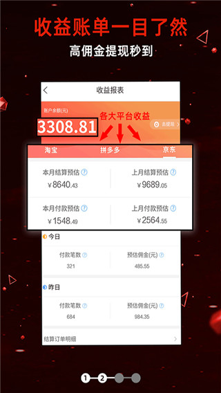 2、极高的返利:独有的超级返利,品牌特惠,九块九全国包邮,低价+极高返利+100%返利保证。