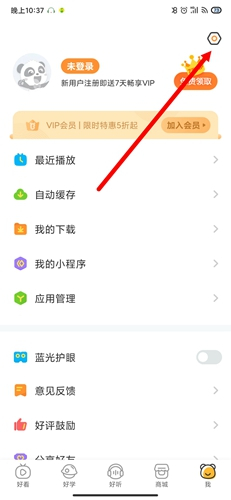 1、首先我们点击【我】,来到我们的个人界面,然后点击右上角的齿轮。