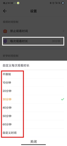 在这里我们可以查看“每次观看时长”,点击后即可设定每次观看的具体时间。