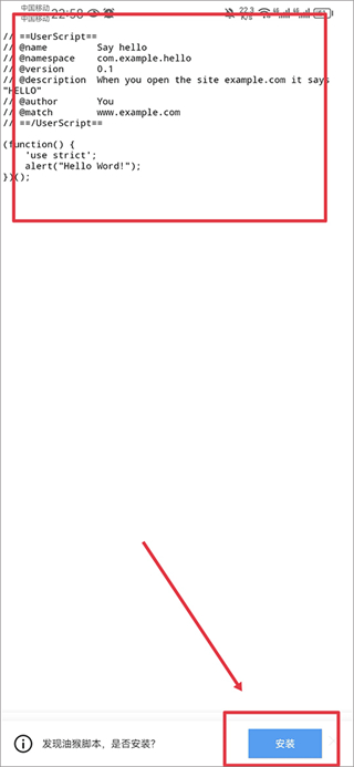 进入后就会显示脚本代码,你可以选择复制脚本代码添加安装,也可以直接点击下方弹出的安装即可