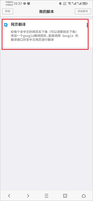 X浏览器内置了脚本管理器,并且针对油猴脚本做了一些兼容。鉴于,目前的油猴脚本大都是面向PC浏览器,支持移动浏览器的油猴脚本并不多。所以首先确认该脚本是否支持移动浏览器,其次,X浏览器只是兼容了常用的油猴脚本API。