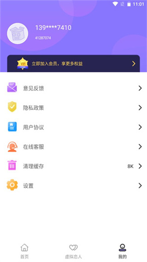 点击下方导航栏中的【虚拟恋人】,进行相应的设置后,软件就会帮你创建。