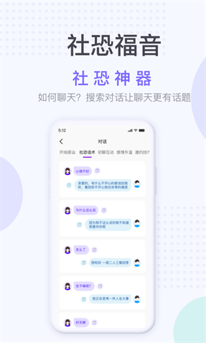 社恐专用的 APP 具备众多实用的功能,像心情的记录、对社交恐惧症的自我测试、心理方面的疏导等等。在这里,用户能够把自身的情绪变动以及社交恐惧症的症状记录下来,进而获取到专业的心理疏导以及相关建议。这款软件还能支持匿名聊天与私密聊天,这样用户就能保障自身的隐私与安全了。