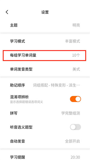 出现“更改设置后将开始重新开始一组单词学习”,选择“确定”,每天背单词量就设置成功了。