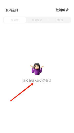 出现“还没有进入复习的单词”,这样数据清除完成可以重新背了。