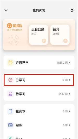 7、 选择生词本同步学习,在断网后新增的生词也可以继续学习。