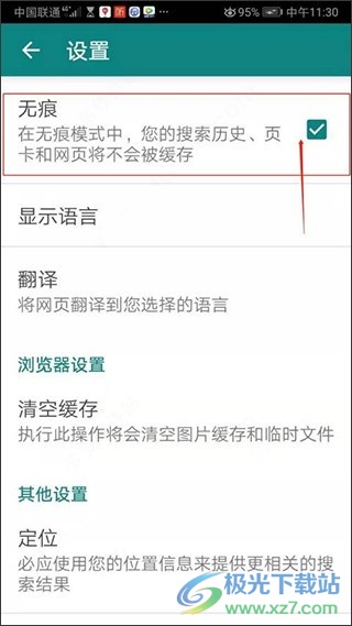 3、这里的无痕,勾选一下,每一次的搜索和观看都没有痕迹啦,