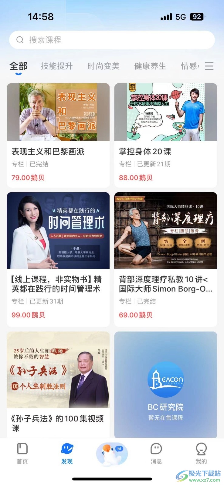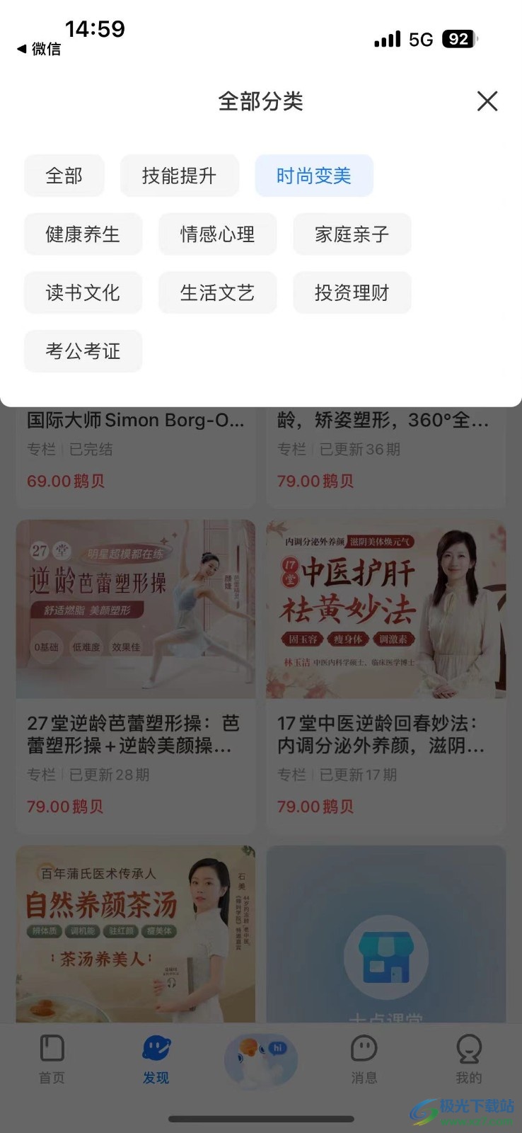 2、在发现可以看见很多可成,有技能提升、时尚变美、健康养生等等。