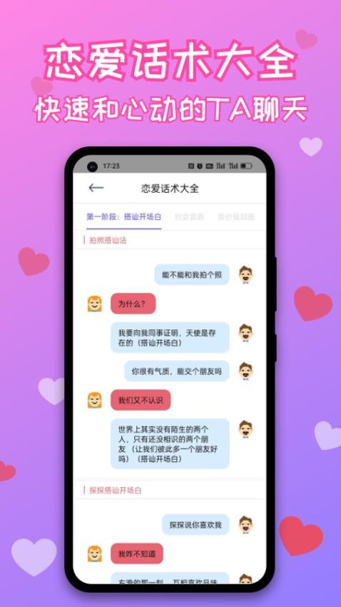 用户可在线查看到很多的恋爱话术,可对各种恋爱话术进行学习使用。