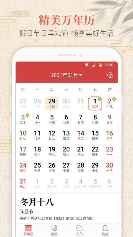 自动把及节日节气推送到首页,方便用户查看,在通知栏快速接收到信息。