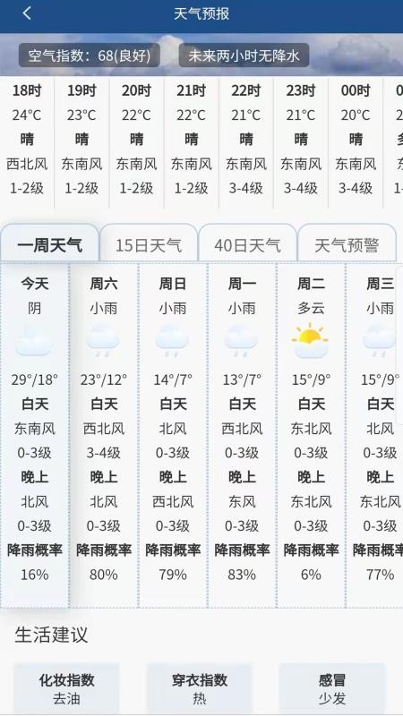 提供了准确的天气资讯内容,帮助用户了解最近的天气变化