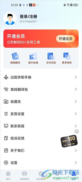 5、登录页面,不懂翻译就来这里,里面有好友的出国救助手册哦,可以在这里一站式管理自己的翻译结果。