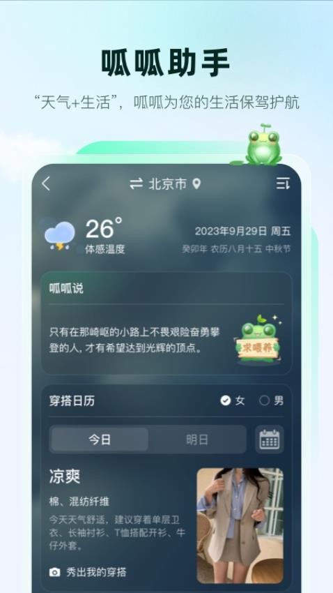 依据天气情况,推荐合适的衣物搭配,记录天气穿衣档案。